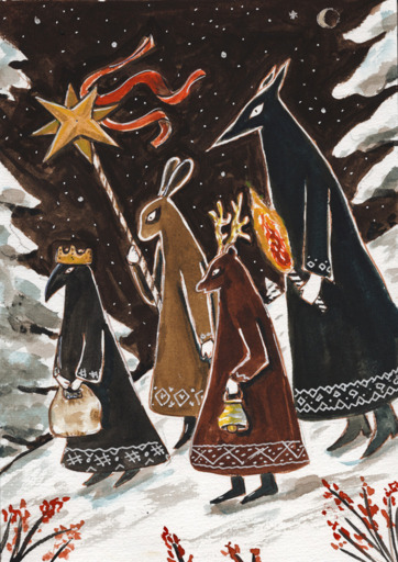 Thank you! In Slavic tradition (it can be found in some Germanic and north Italian places too), the people would dress up as spirits to thwart the evil spirits, while also singing Christmas carols. This was originally a pagan tradition that got embedded in Christianity. They’d hold an avatar for the Sun, to signify that the Sun is returning, the days are getting longer. The tradition is generally called Koliada.